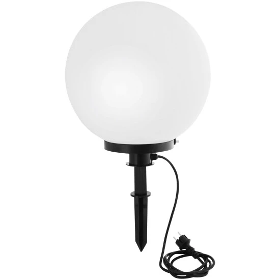 - Lieferumfang: Kugelleuchte, Leuchtensockel, Distanzstück, Erdspieß, Verschlussring