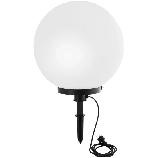 - Lieferumfang: Kugelleuchte, Leuchtensockel, Distanzstück, Erdspieß, Verschlussring