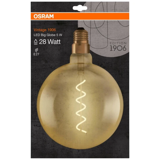 - Lieferumfang: 1x LED Vintage 1906 Big Globe E27 5W 2000K 300LM 28W-Ersatz gold