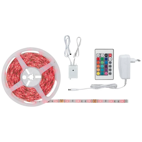 - Lieferumfang: LED-Streifen, Fernbedienung, Zuleitung, Montageanleitung