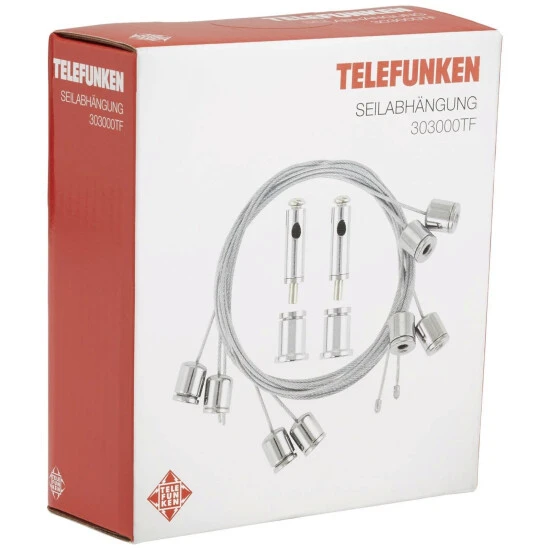 - Setbestandteile: 4 Stahlseile inklusive Höhenverstellung, 4 Befestigungen für das Panel, 2 Befestigungen für die Decke, Montagematerial